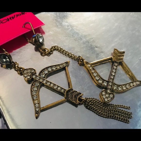 Bow arrow heart long crystal earrings Betsey Johnson Valentine’s Day Cupid gift