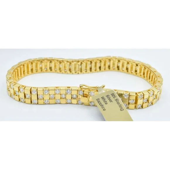 White Sapphire Bracelet .925 Sterling Silver -Yellow Gold finish