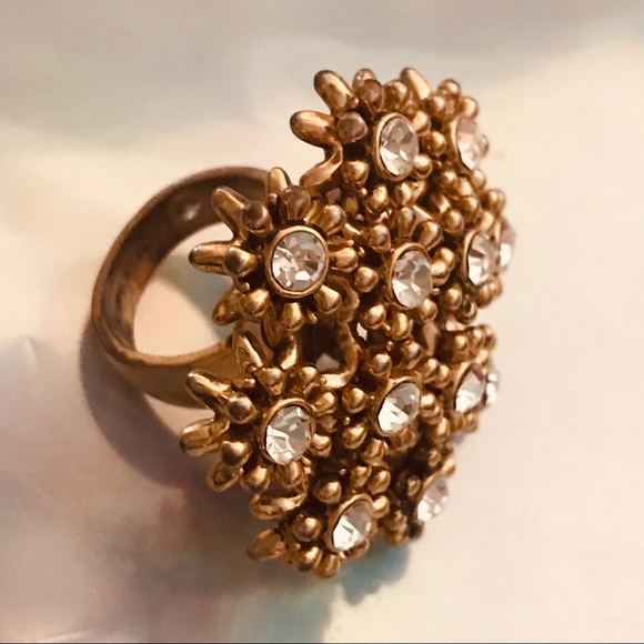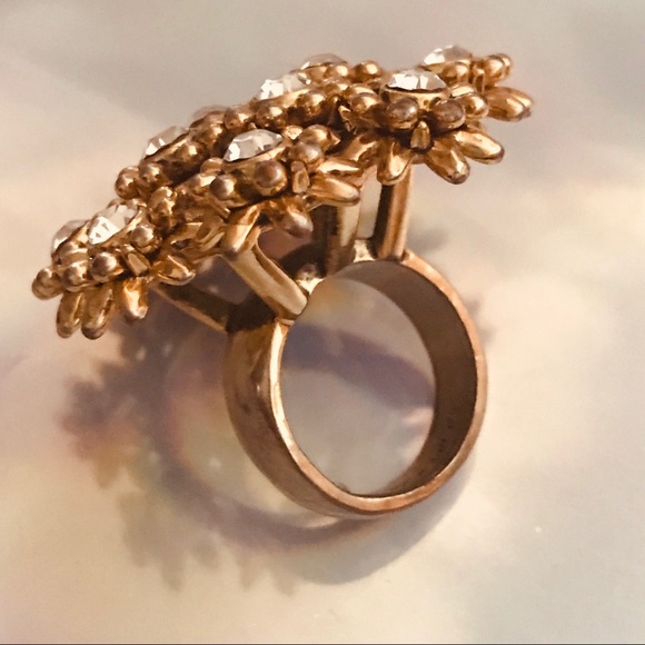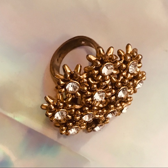 Gold colored crystal rhinestone embedded bouquet of flower floral cluster ring by Betsey Johnson