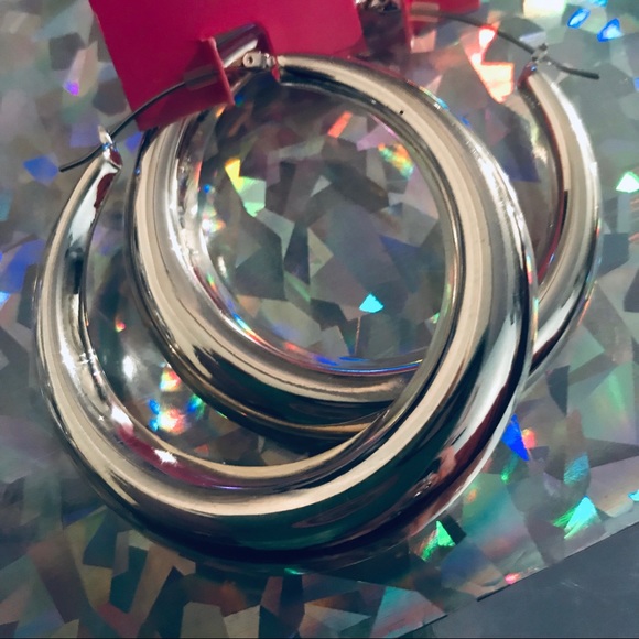 Extra Large hollow hoop vintage gypsy doll earrings by Betsey Johnson