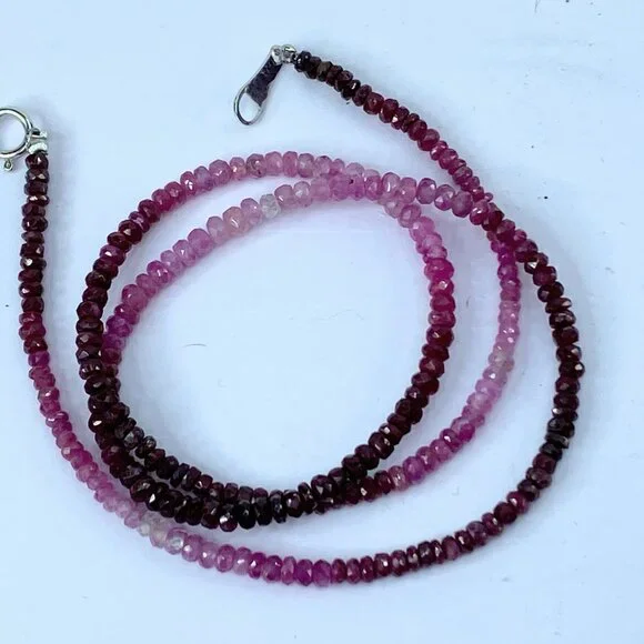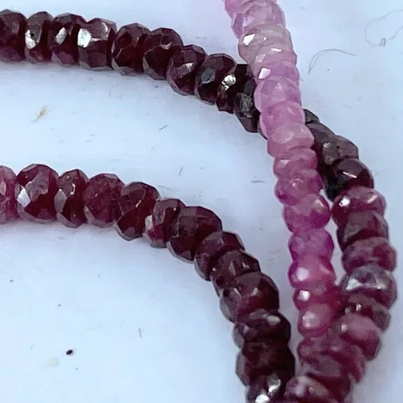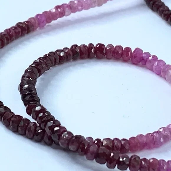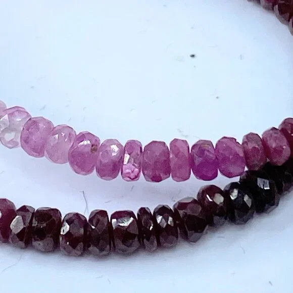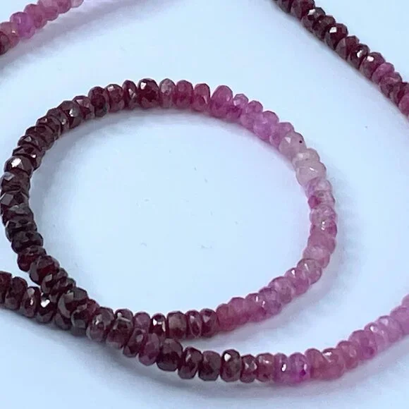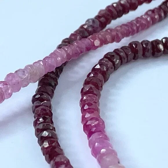 Natural Ruby Gemstone Beads,July Birthstone, graduated color. Natural, untreated, shaded ruby rondelle faceted, AA grade, originating from Africa—size: 2.6mm - 3.14mm (LxW) and...