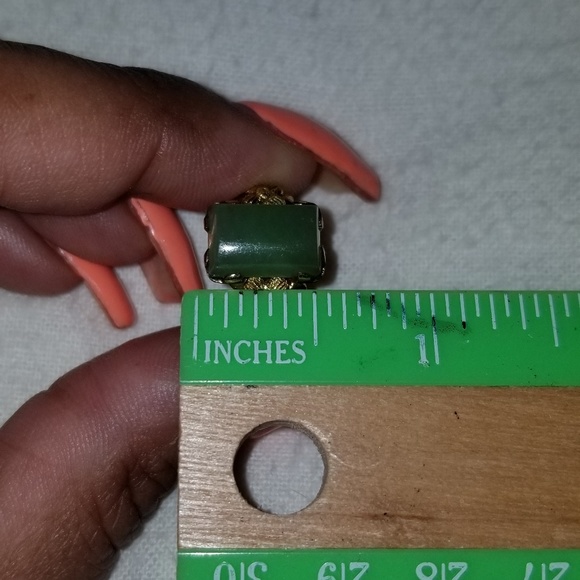 Very nice vintage green jade ring with flowers on each side. Please see all pictures. It is stamped 10k. Condition is good, may need some cleaning... The ring has light scratching.. Sz6