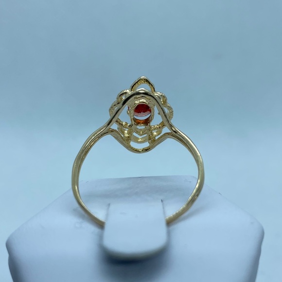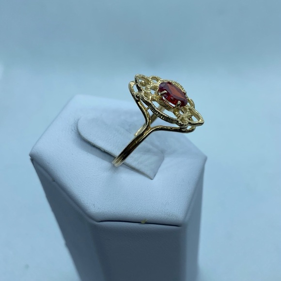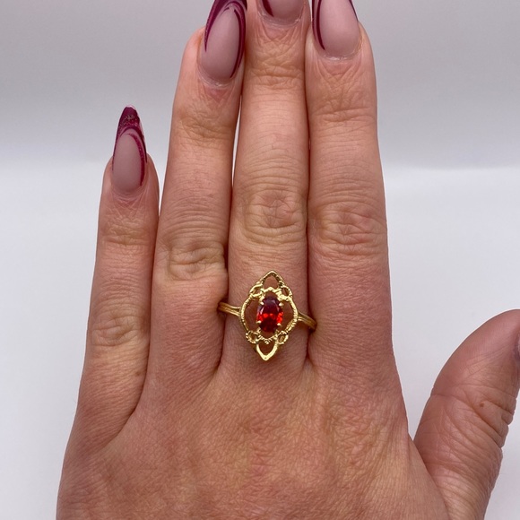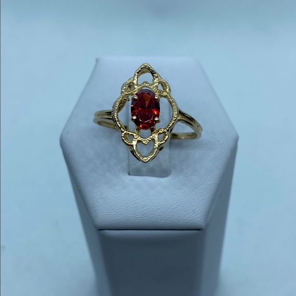 item #32514k yellow gold red tourmaline Size 10 1/2All jewelry is tested for purity.Comes in a gift box and will be professionally cleaned before shipped (:(Rings can be sized up or down for $20 extra)