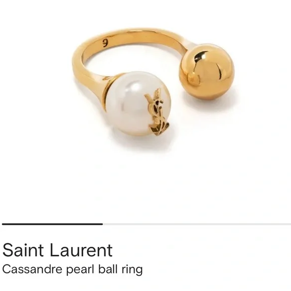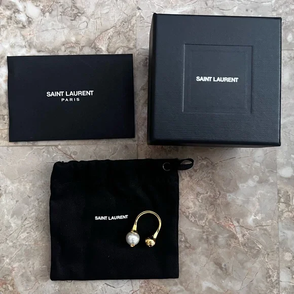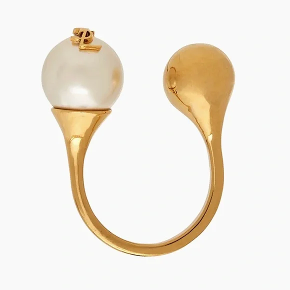 Brand New Saint Laurent Gold and White Pearl Statement Ring