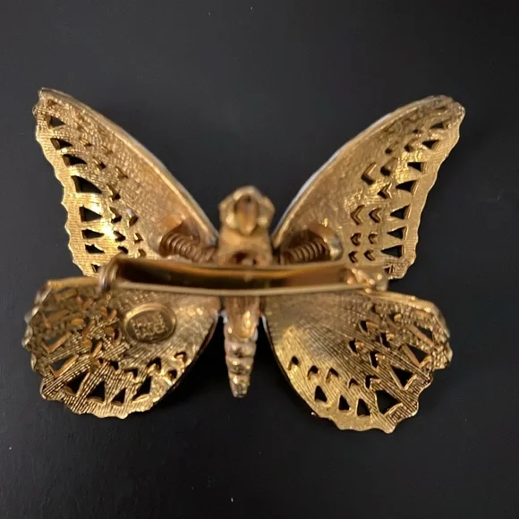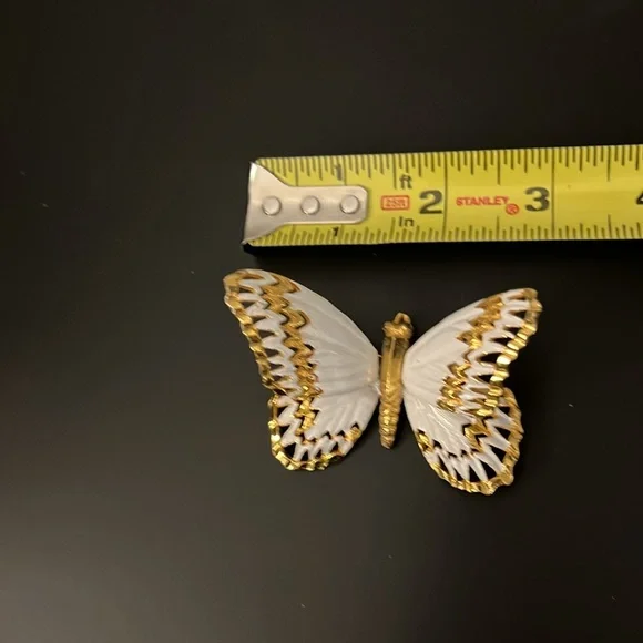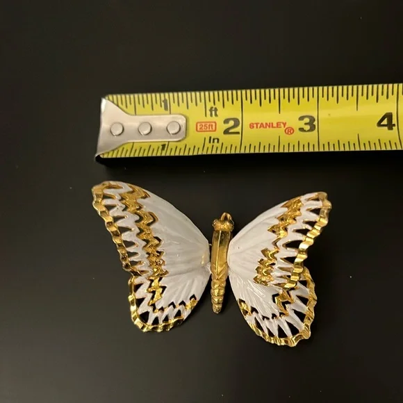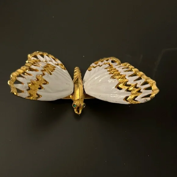 Gold toned & white enameled butterfly Exquisite craftsmanship Larger wings have springs underneath Usually described as a “trembling butterfly”Innovative and unique Designer:...