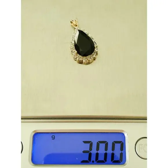 Vintage 14K Gold E. Demarco Sapphire and Diamond Pear Pendant