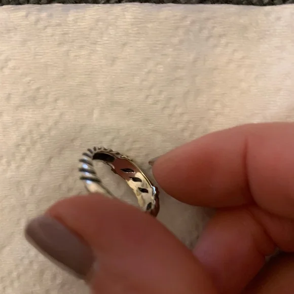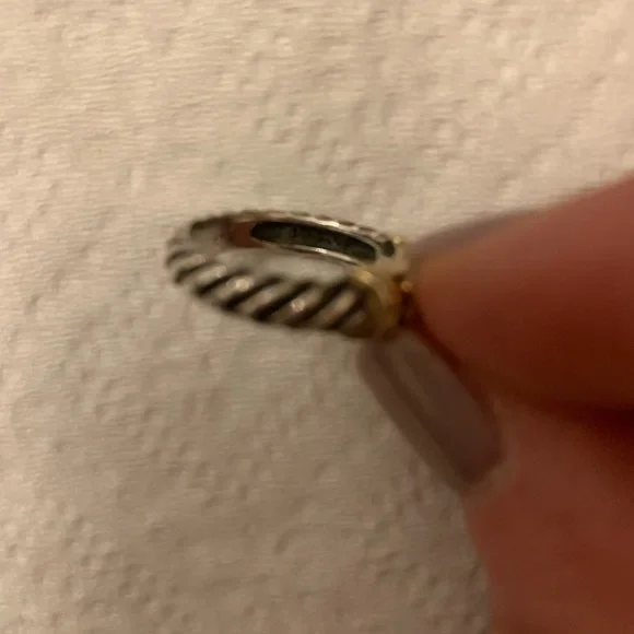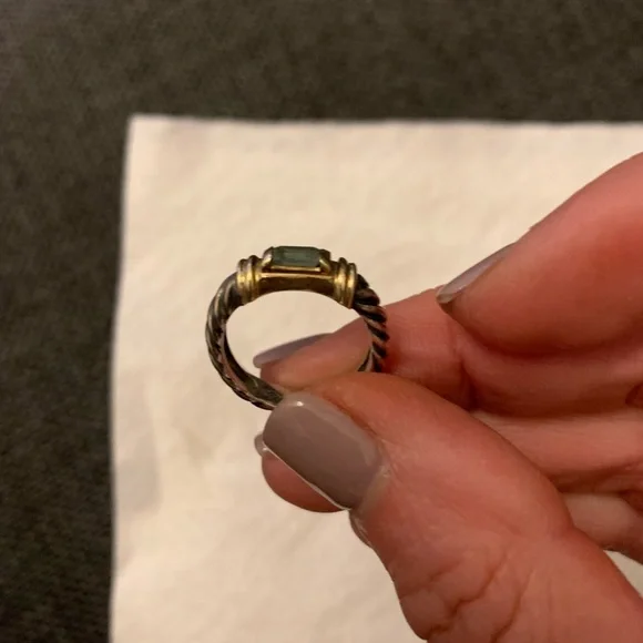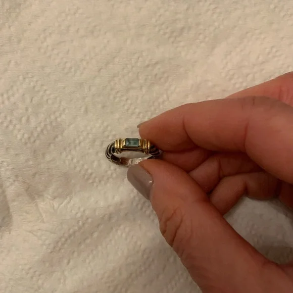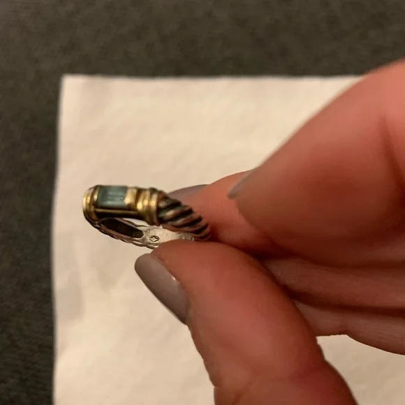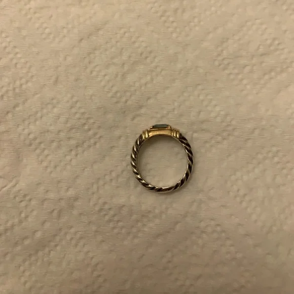This David Yurman ring is sterling silver and gold with a blue topaz stone.Size 6 ring measures 1/2 inch diameter area for finger to fit in.