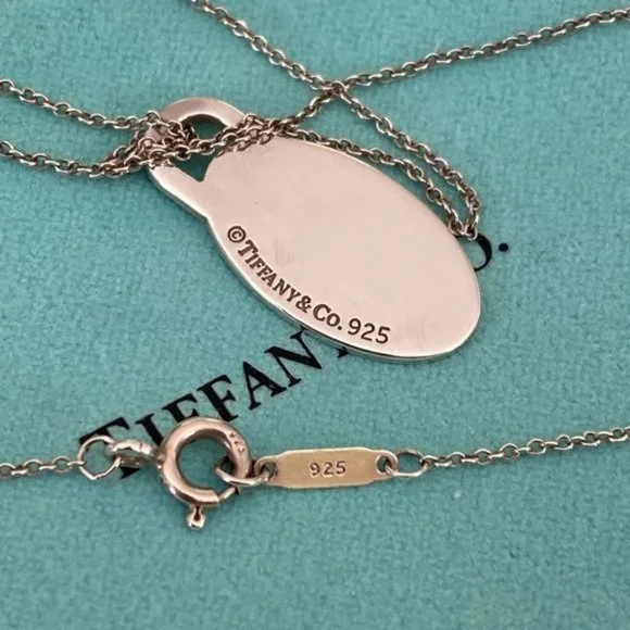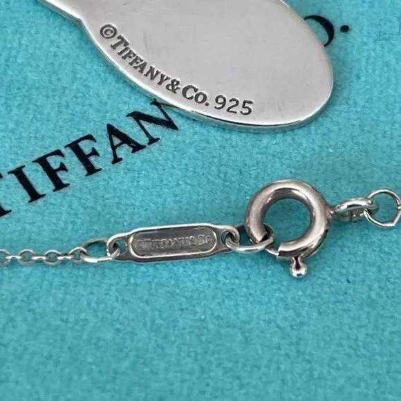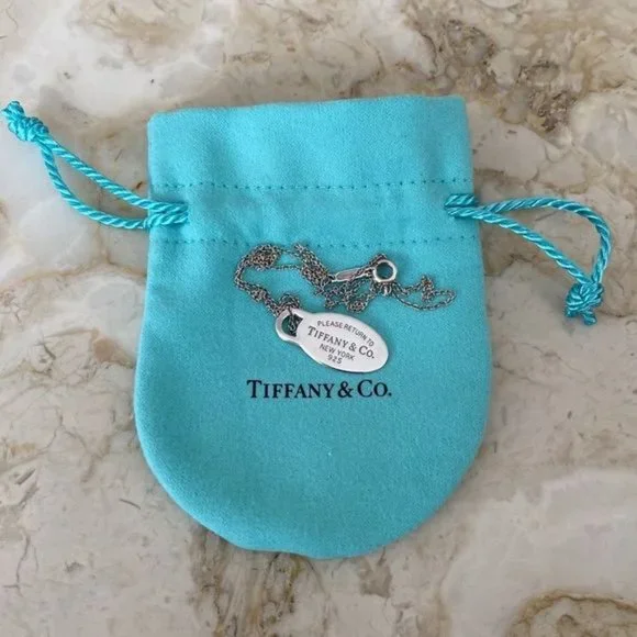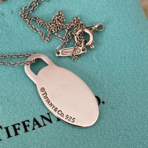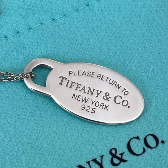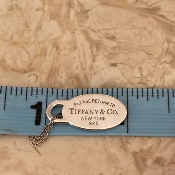 In excellent preowned condition gorgeous authentic Tiffany & Co. mini “Please Return to Tiffany & Co. New York” oval tag in 925 sterling silver.Polished and with no visible scratches or wear signs.Hangs from an 18” long Tiffany & Co. sterling silver fine chain. Will come with original Tiffany dust bag.From smoke and pet free home Same day shipping