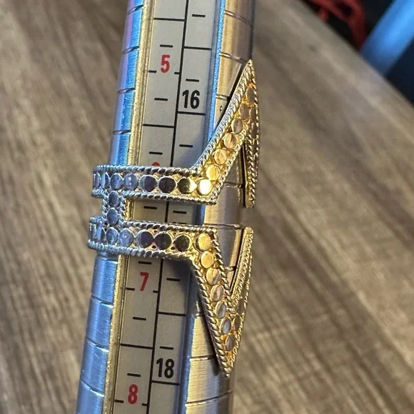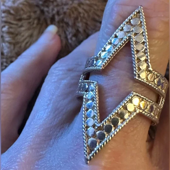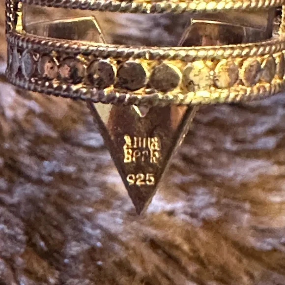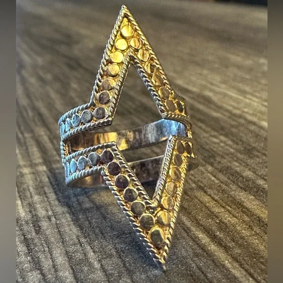 Do you love Anna Beck? Yes, Me too.These are Authentic Anna Beck Gold Double Triangle Ring.*RETIRED LIMITED EDITION DESIGN* One Owner = Me. From my personal collection.Make a statement without saying a word with these bold, special and retired limited edition Anna Beck creation.Handmade in Bali.Also great for gifting - Looking for a unique gift for your mom, sister, best friend or even yourself! Gifting for a birthday, anniversary, graduation, proactively now for Christmas or Just Because I Love You!Includes: Pictured Authentic Anna Beck Gold Double Triangle Ring, 18K Gold over Sterling Silver.No additional accessories included.