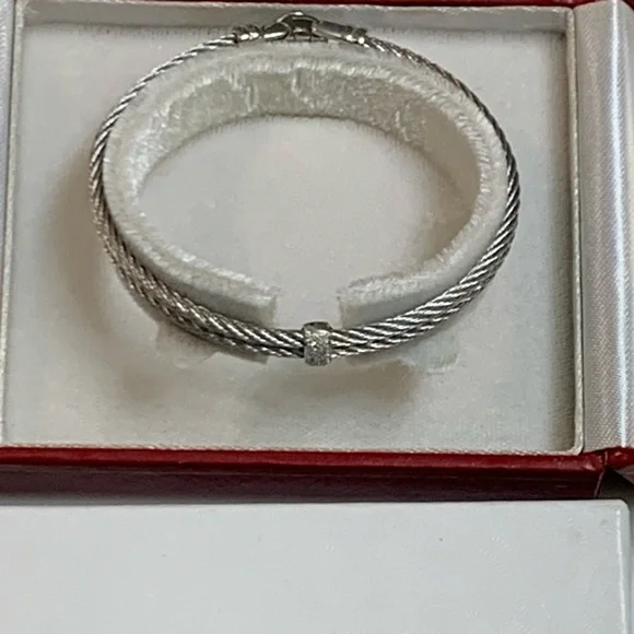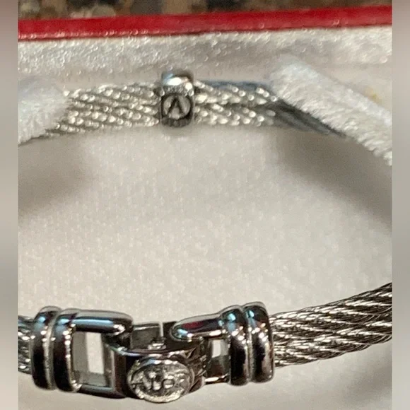 ALOR 18k White Gold & Stainless Steel BraceletSingle station diamondsPreowned, excellent condition. Rarely worn