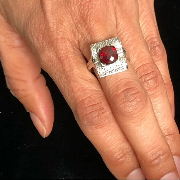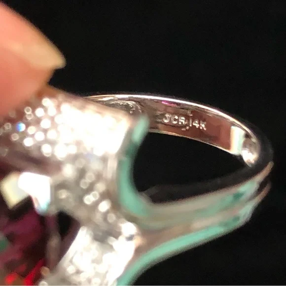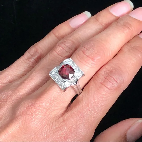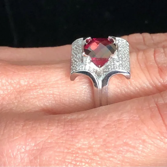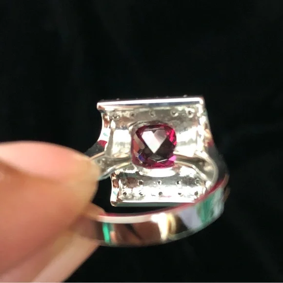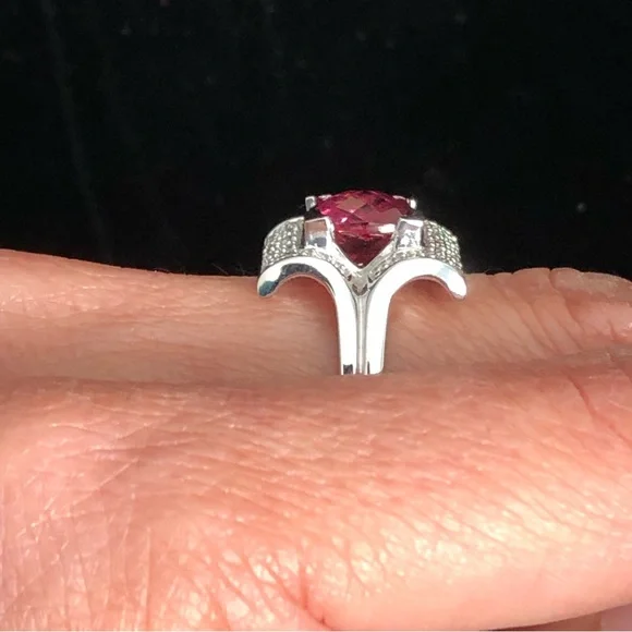 2.90ctw cushion cut Rubellite which is a deep red set in a unique arching square of 14kt white gold. NWOT30031234