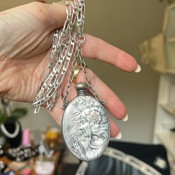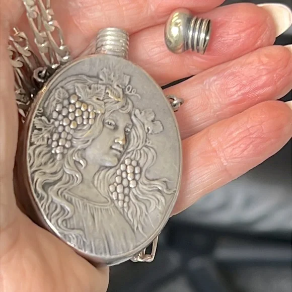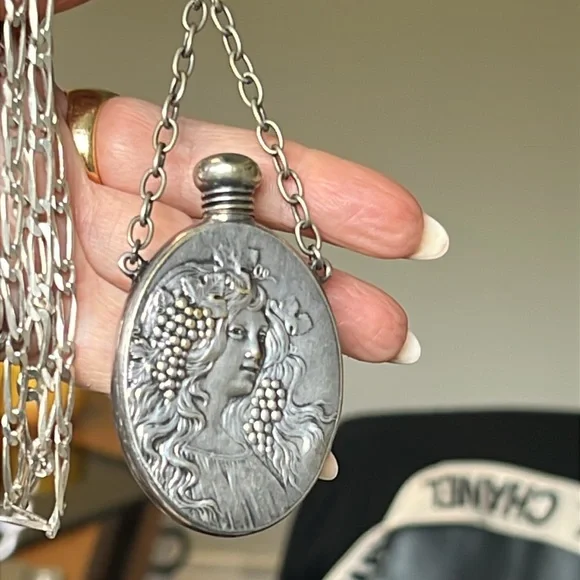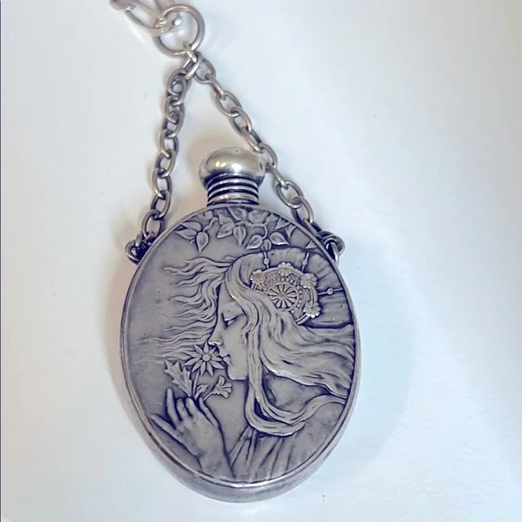 Sterling silver vintage perfume flask, the chain is not vintage, but the small chain connecting the flask isW108 051