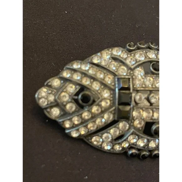 Vintage Ben Amun Art Deco Styled Brooch Sapphire And Crystal Rhinestone