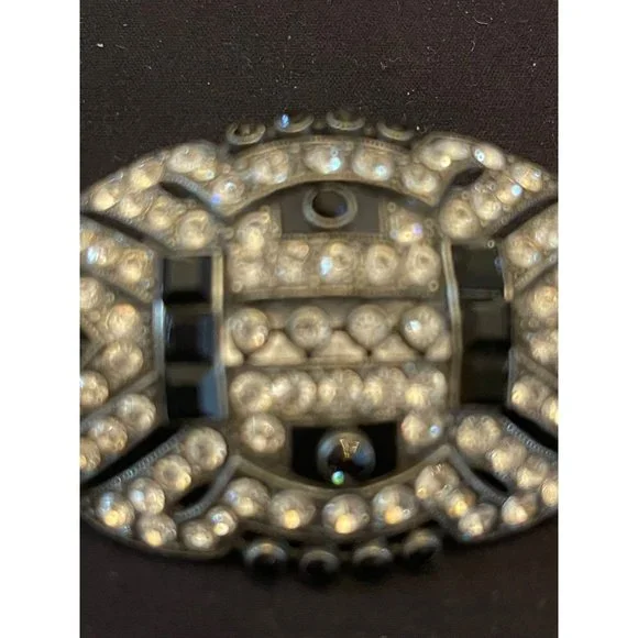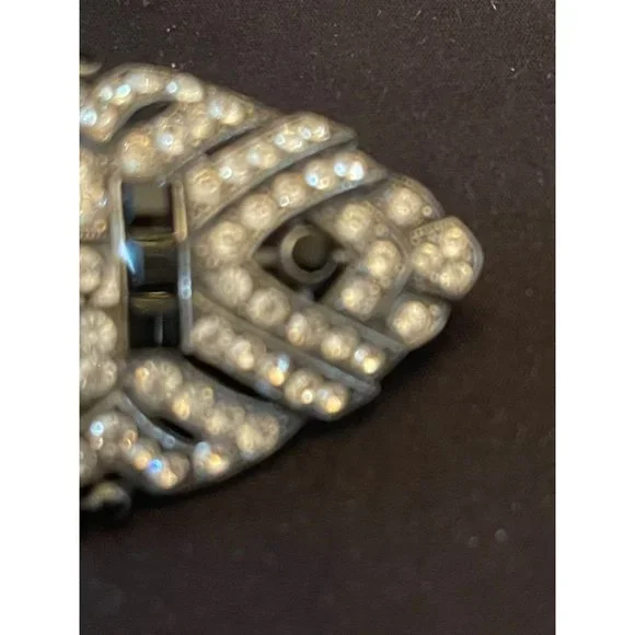 This offer is for a stunning Ben Amun signed brooch of sapphire colored rhinestones and crystal rhinestones in a popular Art Deco style. Ben Amun is a well known costume designer whose jewelry is sold in high end department stores like Macy’s and Neiman Marcus.This classic brooch is most likely an 80’s piece styled after the popular flapper Deco period. The clasp is tight and secure.3 x 1 5/8ths inch