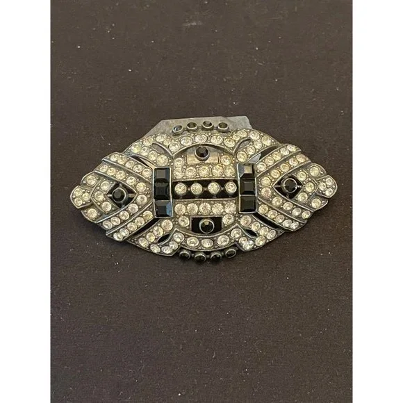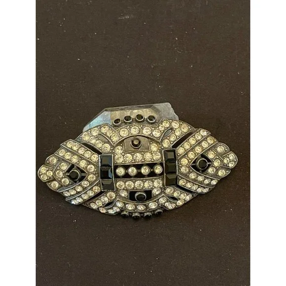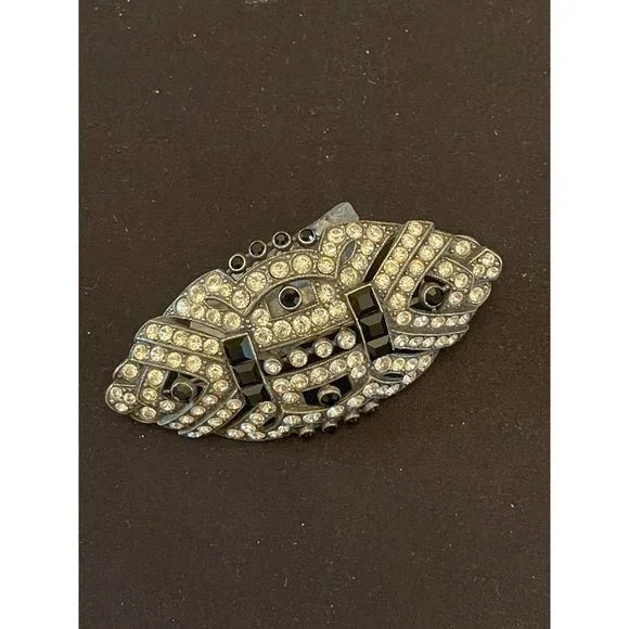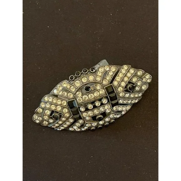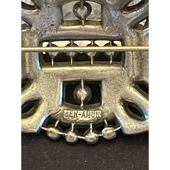 This offer is for a stunning Ben Amun signed brooch of sapphire colored rhinestones and crystal rhinestones in a popular Art Deco style. Ben Amun is a well known costume designer...