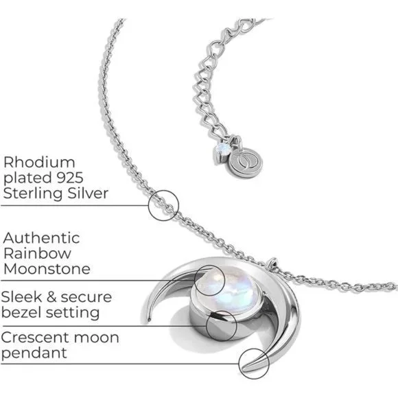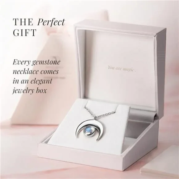 Moon Magic – the jewelry brand that is reinventing an entire industry – has over 1 million social media fans from around the world. Timeless and stylish Moonstone Necklaces for Women meet astonishing quality.Moon Magic Jewelry offers 100% Authentic Gemstones: Hand-picked with love in mining rich countries all around the world, we use nothing less than real gems to craft our jewelry.Long Lasting Brilliant Finish - Moon Magic Rainbow Moonstone Necklaces are made from 925 Sterling Silver plated with a rhodium layer that´s shiny and durable. Nickel free, lead free and hypoallergenic.Moon Magic presents: Moonstone Necklace - Crescent Moon. An authentic moonstone is set in our signature moon pendant. With its dreamy, subtly colorful hues it’s the perfect everyday accessory for your leisure, business and romantic date look.