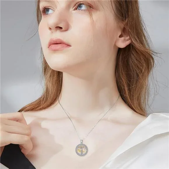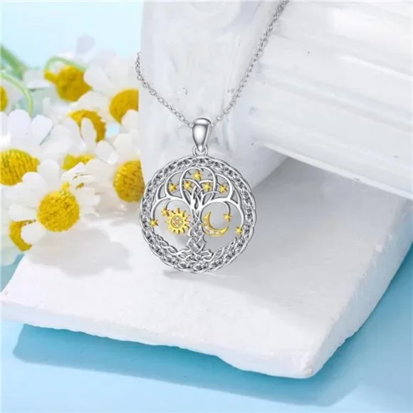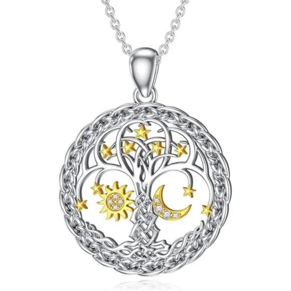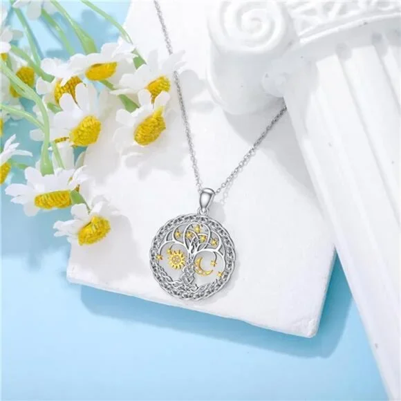 Diamond Sun and Moon Tree of Life Necklace for Women in 925 Sterling Silver