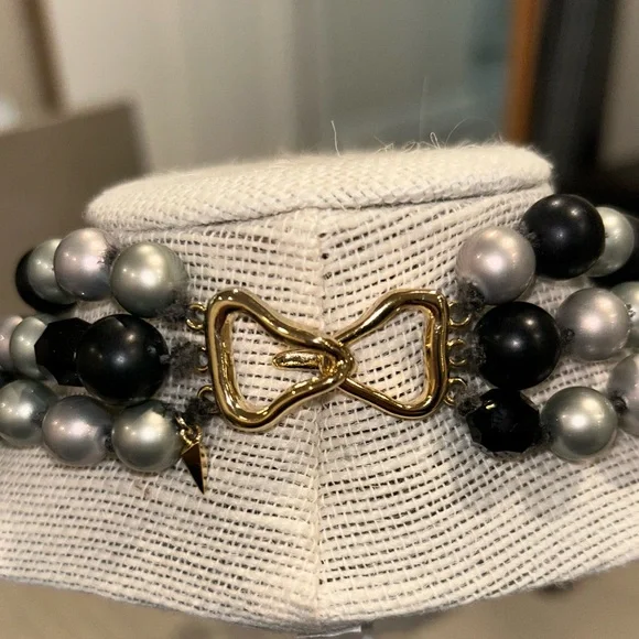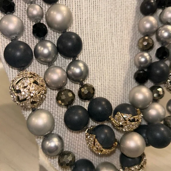 Retails for $575DetailsMetallic and crystal-encrusted beads are strung along this triple-tier necklace with goldplating.CrystalGlass beads10K goldplatedHook claspSIZELength, about 18", 20", 22"In good pre owned condition