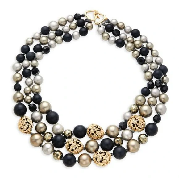 Retails for $575DetailsMetallic and crystal-encrusted beads are strung along this triple-tier necklace with goldplating.CrystalGlass beads10K goldplatedHook claspSIZELength, about...