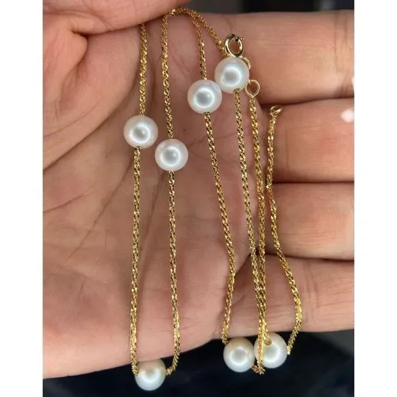 Milor Italy 14KT Yellow Gold White Pearl Necklace 20” Long