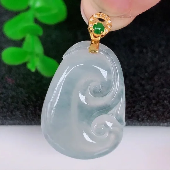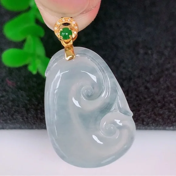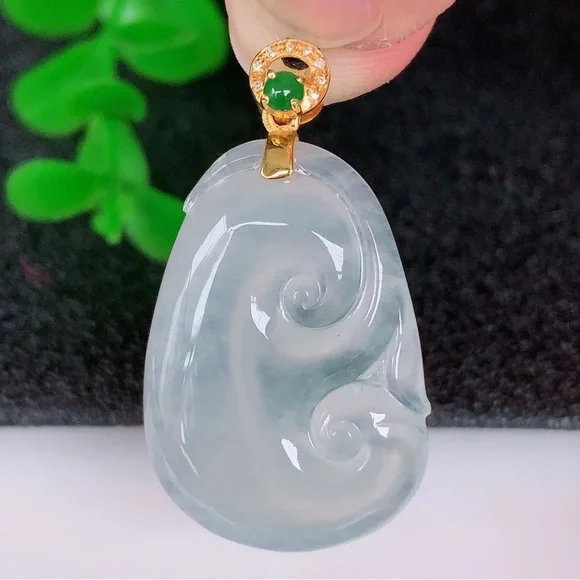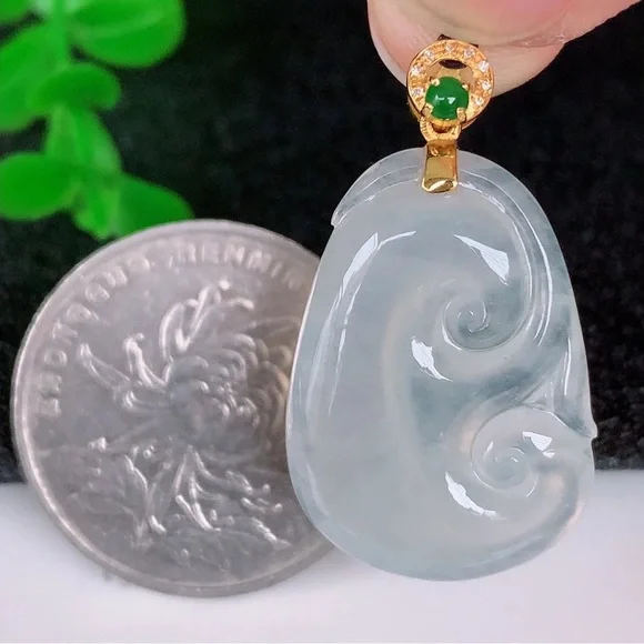When I do not reply in time, you can add my wechat and LINE. Wechat: AFC888866,Line:1802495008018k金镶嵌冰种翡翠如意吊坠,沁人心脾,精致典雅的设计,为佩戴者,增添色彩,送礼自留都是佳品选择!#666/3.98/4整体30*裸石23.8*17*4.5Certified BurmeseGrade A Jadeite Jade Hand Carved Beloved for its deep, diverse variations of color, alluring luster, and remarkable durability, the jade stone hascaptivated hearts and minds for centuries. Its earliest uses date back to the Stone Age, when civilizationspainstakingly crafted sharp axe heads and traded carved jade objects as currency. Master craftsmen acrosscenturies and cultures have fashioned a swath of objects from the in-demand stone, including jade jewelry, plaques, sculptures, and jewelry.Proponents of metaphysical gems believe that the jade stone provides its wearer with enhanced clarity and even access to the spiritual world; there are many published guides available on the different types of of jade and their ability to increase wisdom and intuition. Carved jadependants have long been worn as protective talismans, and ritualistic masks and incense burners crafted from jade have been a part of religious ceremonies from Mesoamerica to ancient China.Hand Carved Burmese Grade A Untreated (Not Dyed) Jadeite Jade Pendant Guaranteed Authentic Approx: 1" DiameterAdjustable 26" Traditional CordComes With Certificate Of AuthenticityBurmese Jadeite Is The Finest Jade In The World And Increases In Value.Rare And BEAUTIFULJade Jadeite Artisan Carved