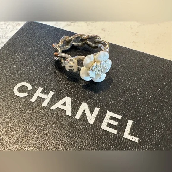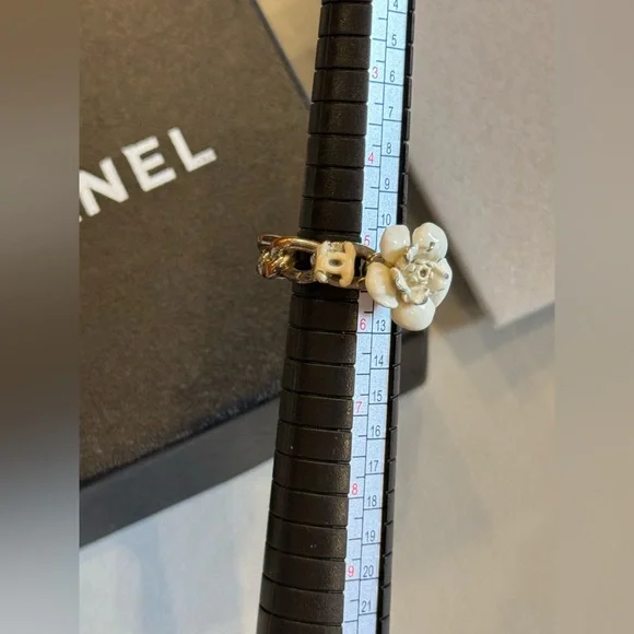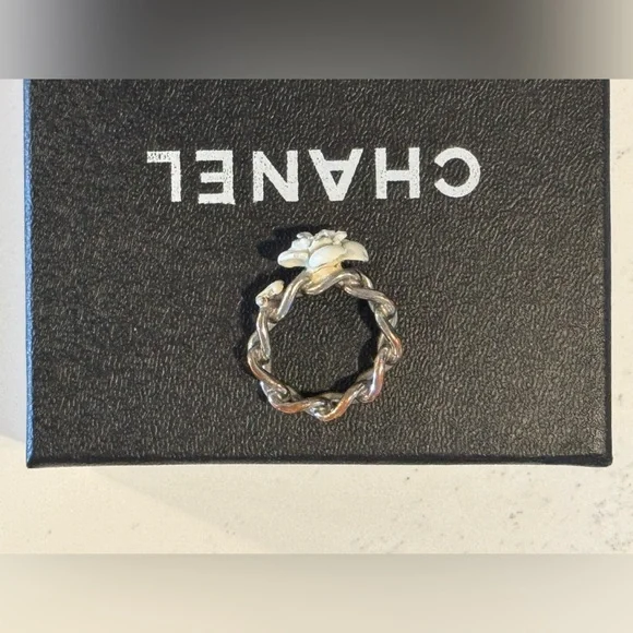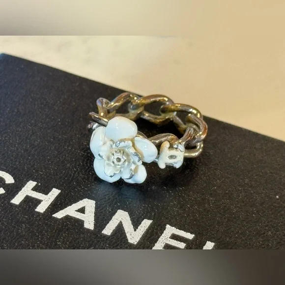 Elegant ring featuring a beautiful white flower design. Perfect for adding a touch of sophistication to any outfit.Callout: Tarnishing due to its vintage natureComes with box and COA (no dustbag)