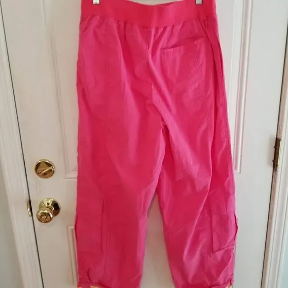 FP Movement Free People Pink Cargo Pants Logo Ankle Cuff Sz Med Dance Streetwear