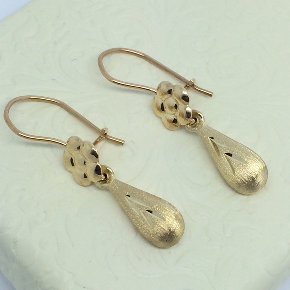 Style: Diamond Cut Pear Shape Drop EarringsLength: 1.00" (approx.)Metal: 14K Solid Yellow Gold (NOT PLATED)." NO TRADE!!"