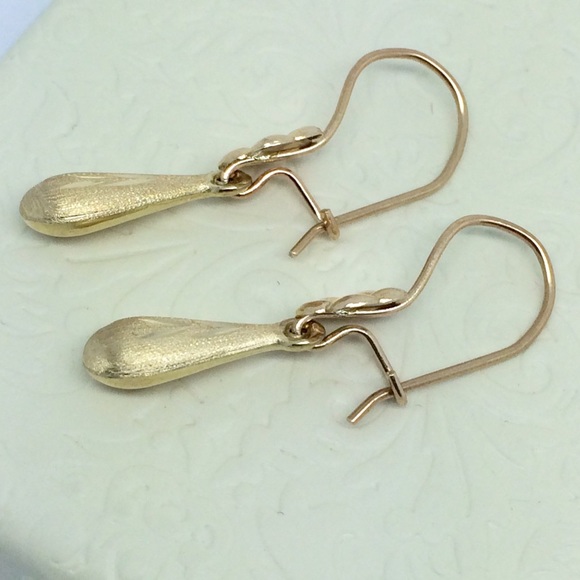 14K Gold Diamond Cut Pear Shape Drop Earrings