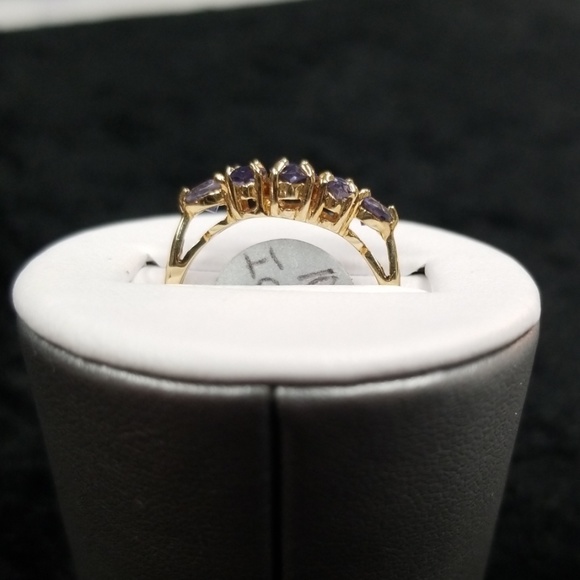 10k Iolite marquis and round cut diamond ring