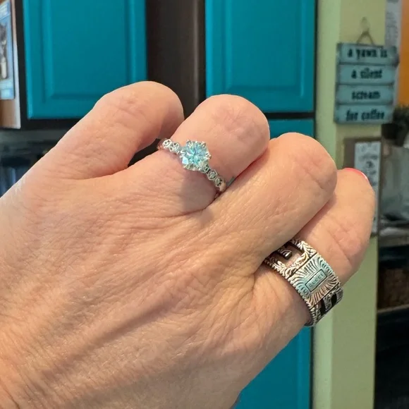 Over 1 ctw Moissanite honeycomb design ring set in 925 sterling silver VVS1Color DComes with certification Main stone is 1 ct bezel set honeycomb design on the band