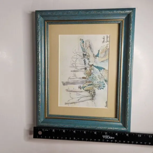 This painting is a 5x7 framed original watercolor painting of peacocks by artist Frankie Eggemeyer. It had been matted at framed, which makes the combined size 11x9. The painting...