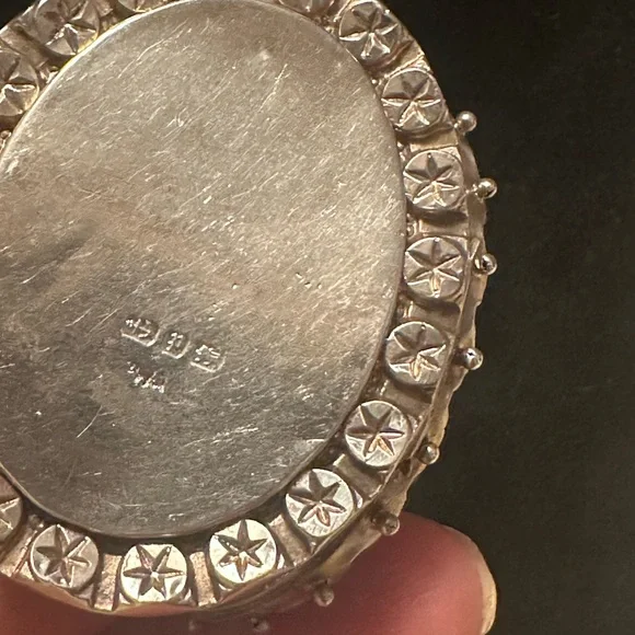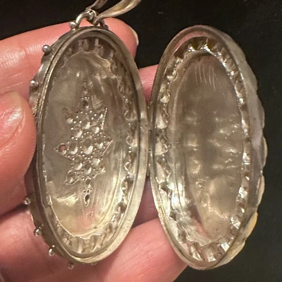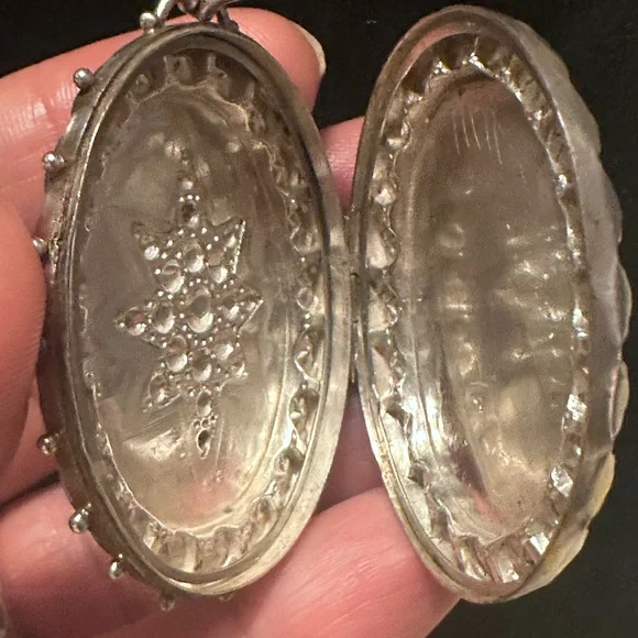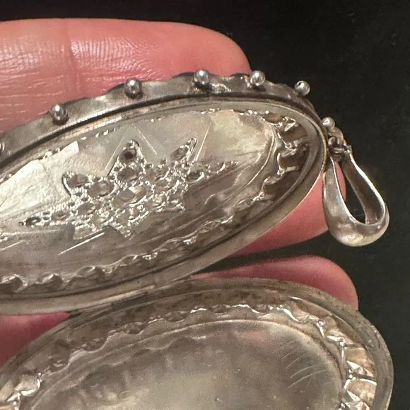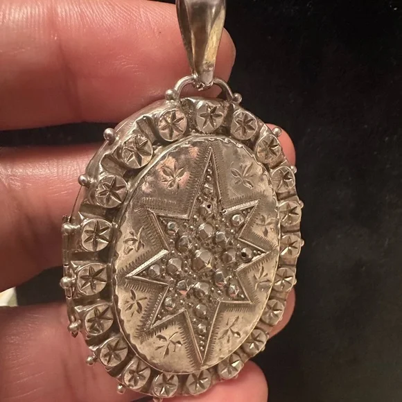 Antique Sterling Victorian Oval Locket with Star Design Birmingham 1889