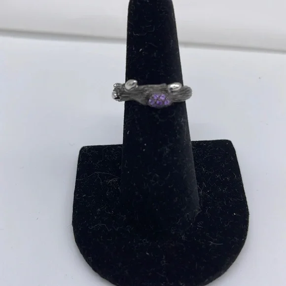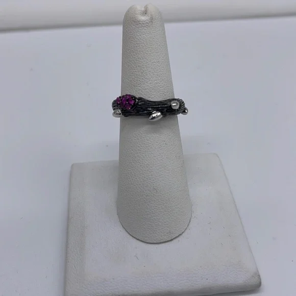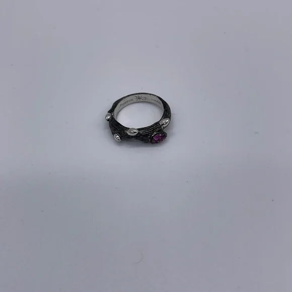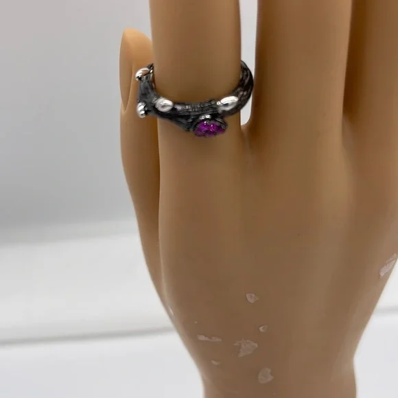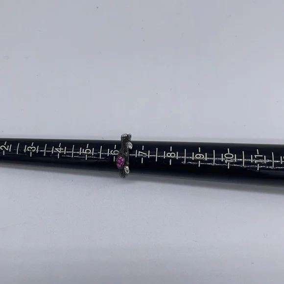 NOWBeautiful branch design Sterling Silver ring shines with a black finish of rhodium plating with bead-set gemstones.