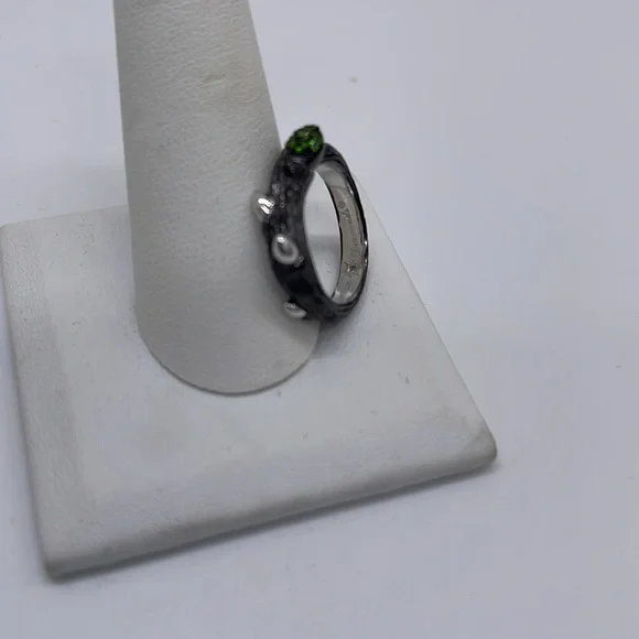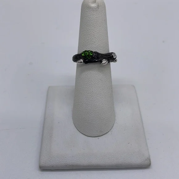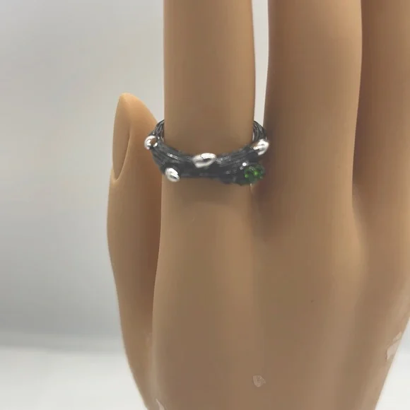NOWBeautiful branch design Sterling Silver ring shines with a black finish of rhodium plating with bead-set gemstones.