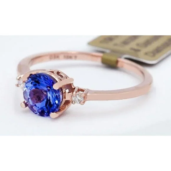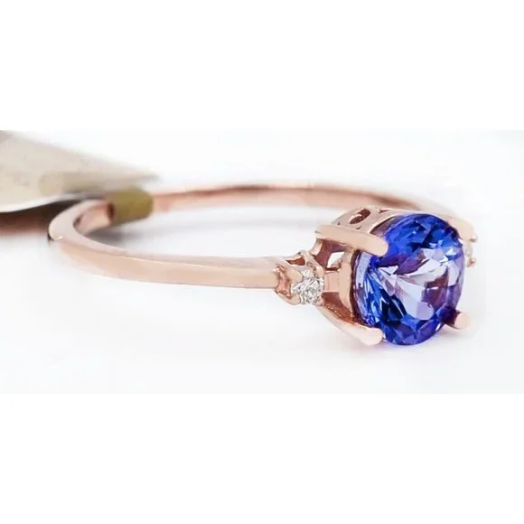 AAA Tanzanite 0.87 Cts & Genuine Diamonds Ring 10K Rose Gold