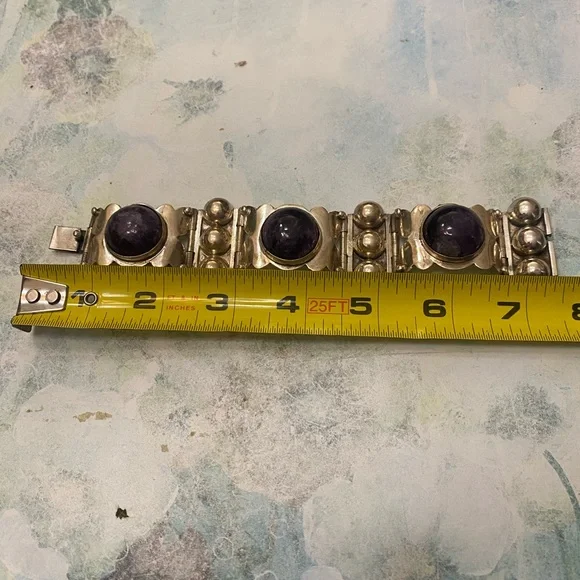 Vintage 3 Bezel Set Cabochon Amethyst Sterling Silvere Bracelet