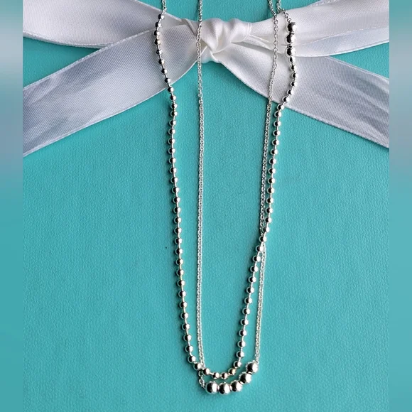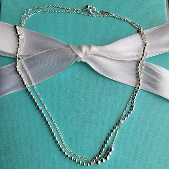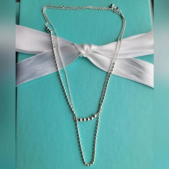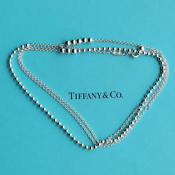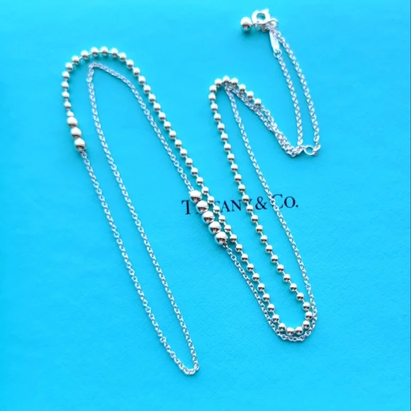 Add some edge to your pendant with this unconventional chain. This design mixes metals and combines beads with a chain for a sophisticated play on a scale. Adjustable 28"-30" long New condition Comes with T&Co pouch! Authentic