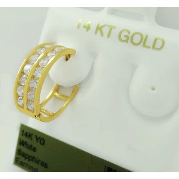 THIS SALE IS FOR A SINGLE EARRING - NOT THE PAIRKarat : 14K yellow gold Gemstones : 16 Lab Created White Sapphires Total ct weight : 0.75 caratsWhite sapphire grades,Hue . . ....