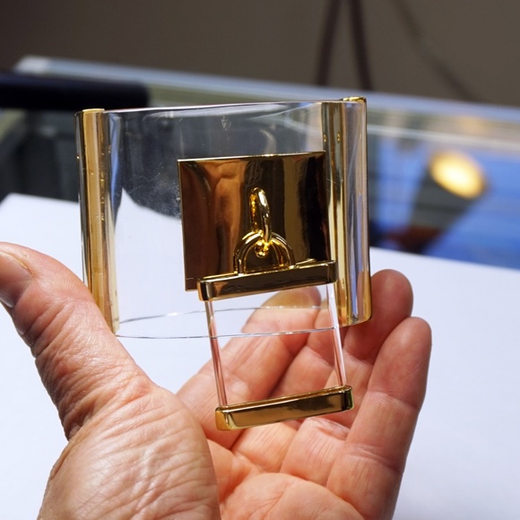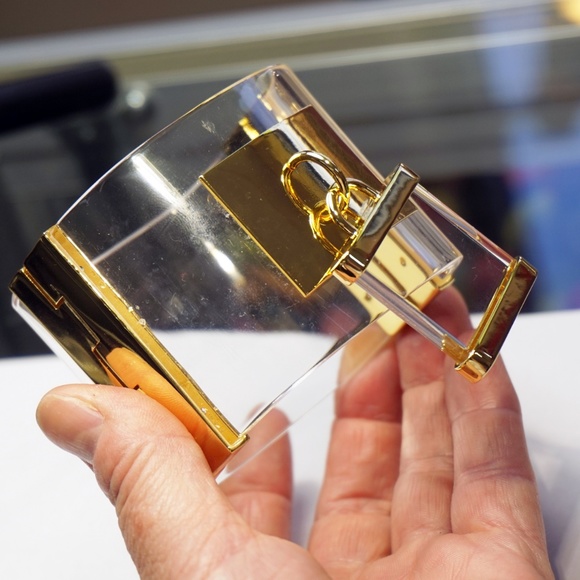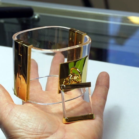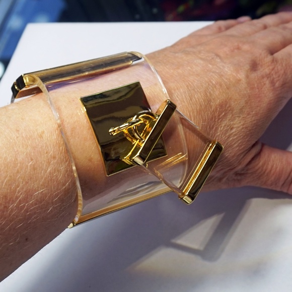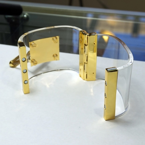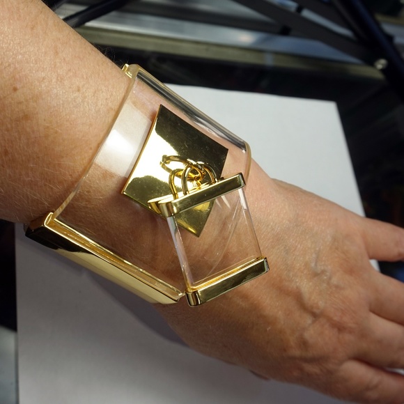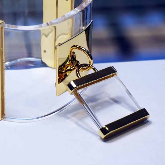 RUNWAY CLEAR LUCITE GOLD 2 1/8" WIDE BRACELET