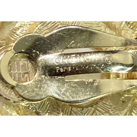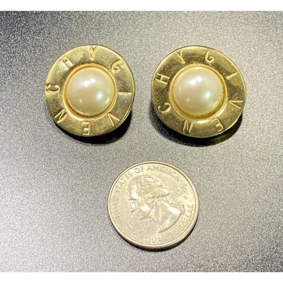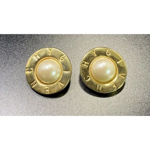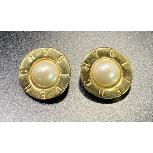Givenchy Signed Gold Plate Pearl Earrings Round Clip On Paris NY.The earrings are in good condition. Signed Givenchy Paris New York and measure 1 inPlease check your pictures as they are part of the description and please ask questions prior to purchase.If I advertise a piece as gold or silver and it is unsigned or unmarked then it has been testedFinally, your feedback is important to us. If you were happy with our service, communication, shipping time, etc let us know but please, prior to leaving a negative or neutral review please contact us and we will do everything in our power to work on a mutually beneficial solution and make it right for you. Customers are #1 and we just want our customers happy with their purchases