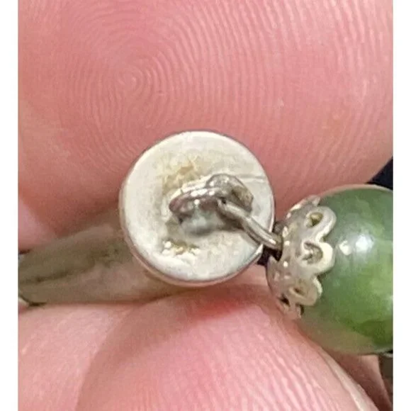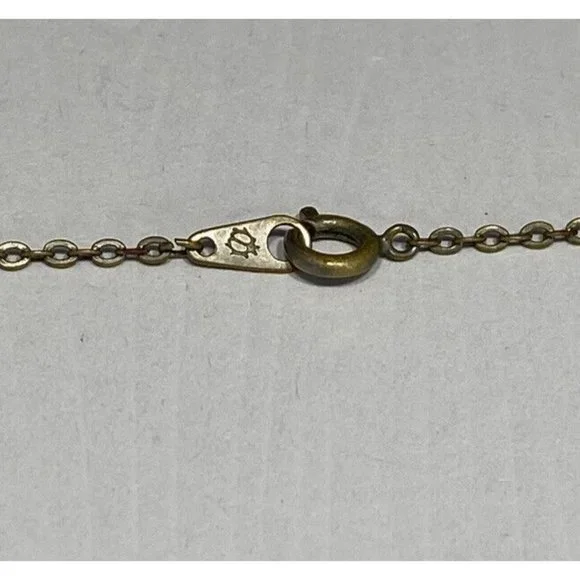 Vtg 925 Double Horn Green Jade Gold Tone Necklace 17 “ Hallmarked With Ladybug