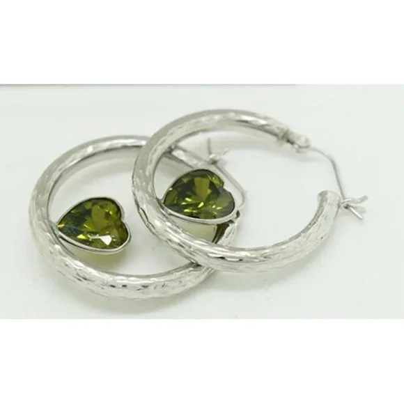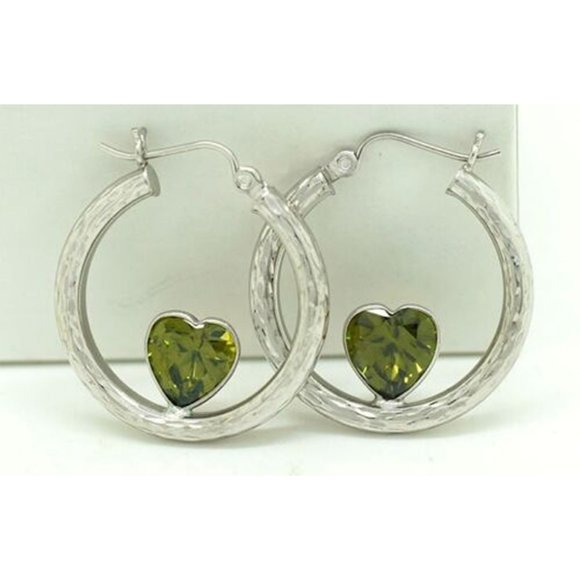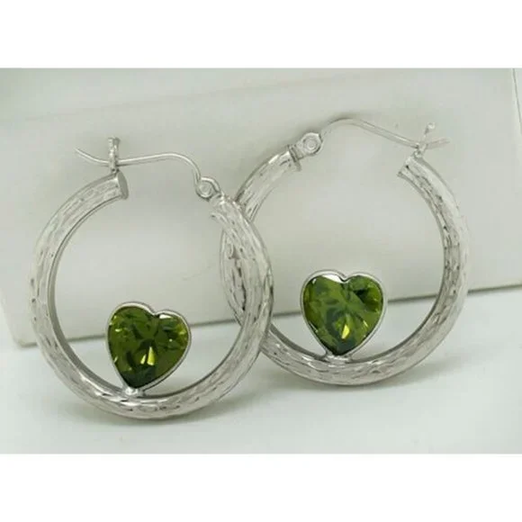 Lab Created 6.56 Cts Peridots Hoops Heart Earrings 10k White Gold