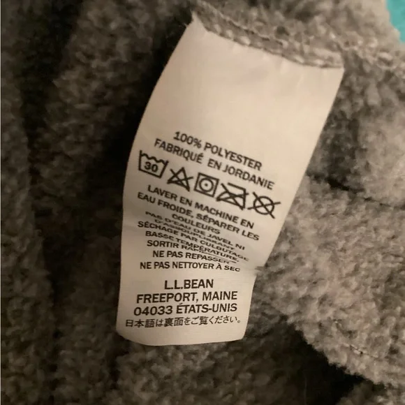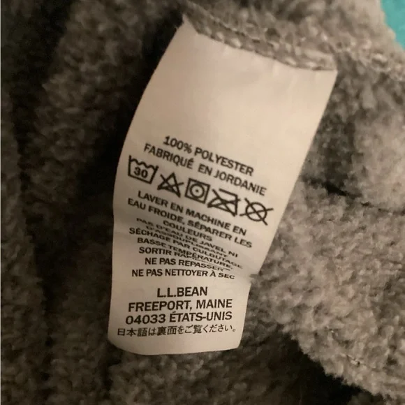 Gray 100% polyester slightly fitted jacket Over head with 4 snap closure Dark gray piping at neck,hem and cuff Length 26” pit to pit 24” approx Preowned but in good condition...