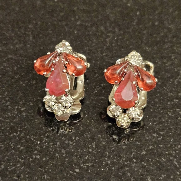 TrefoilGorgeous Vintage Silver Metal earrings with red, pink, and clear crystals in a firefly like shape.Made in GermanyStamped Chr. Dior on the back clasp.Can be turned into Stud Earrings, but would require snipping the base that indicates they are Dior earrings. Please indicate if you´d like them turned into Studs for pierced ears as this will take additional time. Unique Vintage Piecepictured next to quarter for size reference Make an OfferBundle and Save