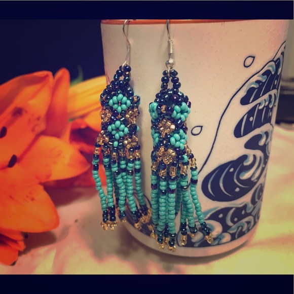 Beautiful beaded cluster necklace and chandelier hook earrings set.Handmade custom jewelry.New without tags.