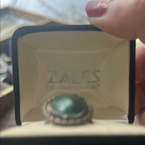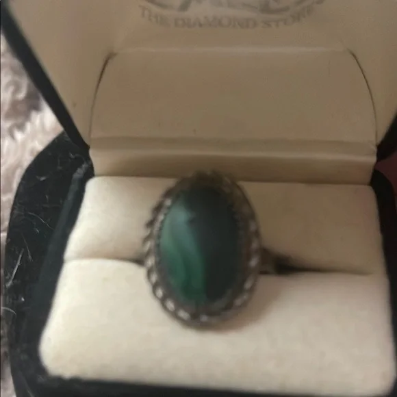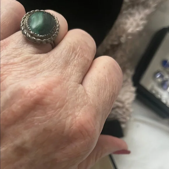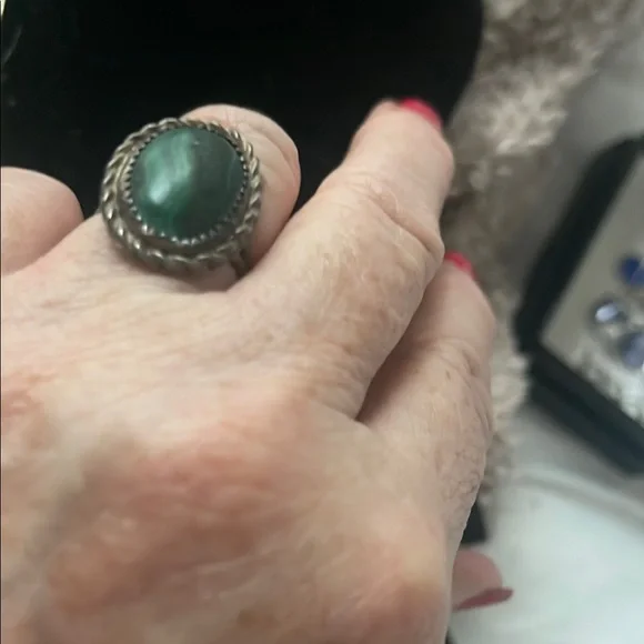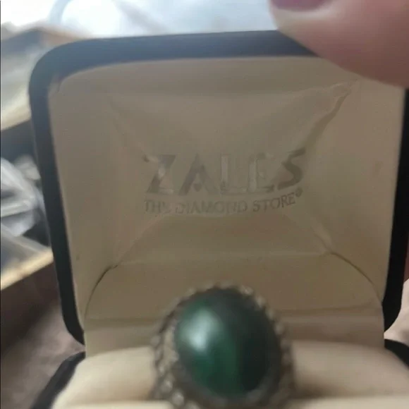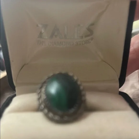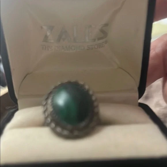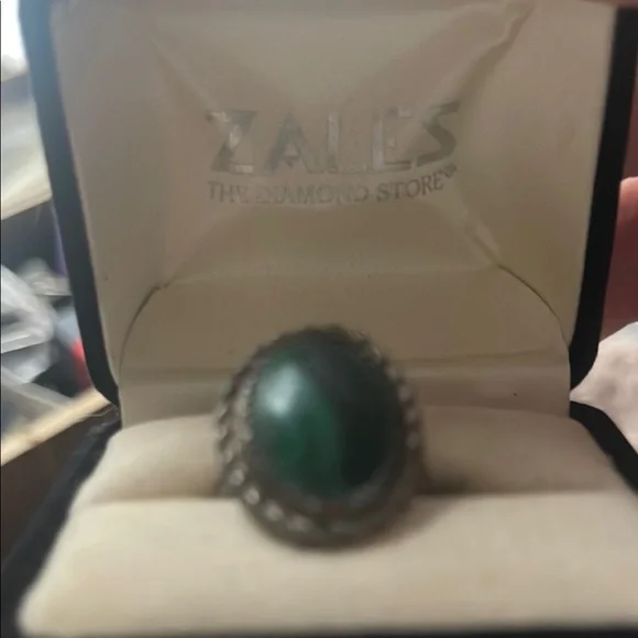 Marked Sterling! Authentic! Belonged to my 90 yr old mom from my dad. Must sell! Native Sterling Signed 6 to 6.5 ring from late 60’s-to early 70’s. This exquisite Zales ring showcases a captivating green stone set in a lustrous silver band. The intricate rope design adds a touch of elegance, making it a standout piece in any jewelry collection. Perfect for those who appreciate timeless beauty and craftsmanship. Looks like Malachite but, my mom always told me from Sedona Turquoise signed things!