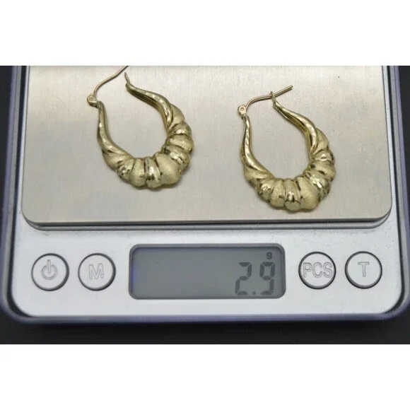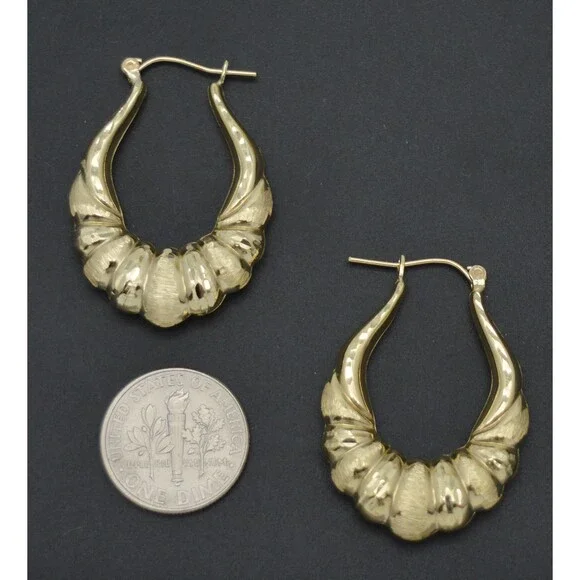 Real 10K Solid Yellow Gold 30mm Shrimp Puffed Diamond Cut Hoop Earrings 2.9gr