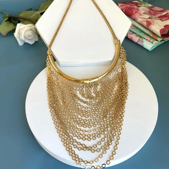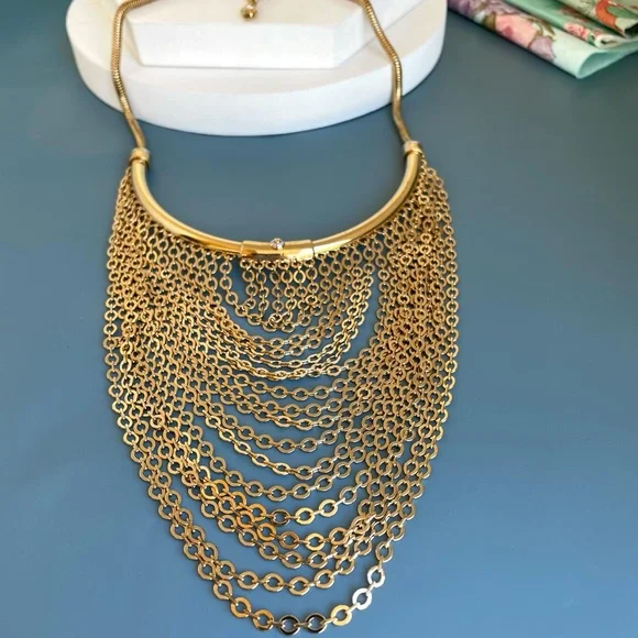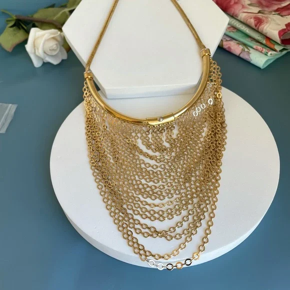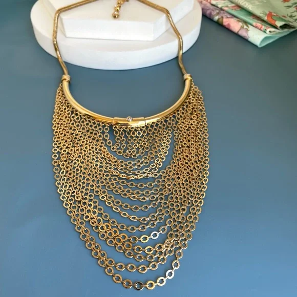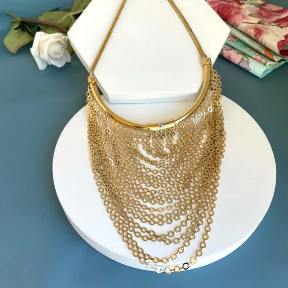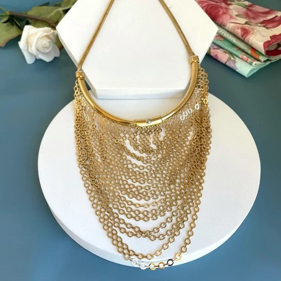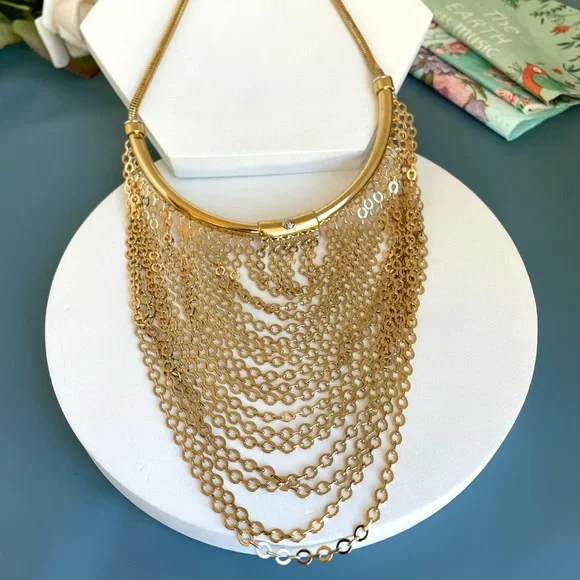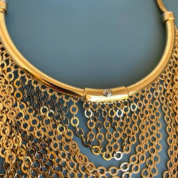 Henri Bendel Gold Tone Statement Chain Collar Necklace