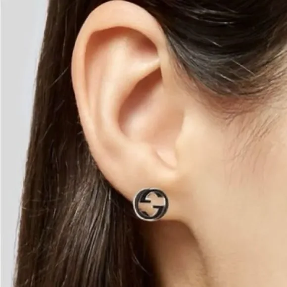 GG Interlocking Sterling Silver 925 Stud Earrings